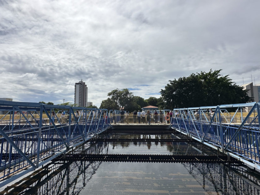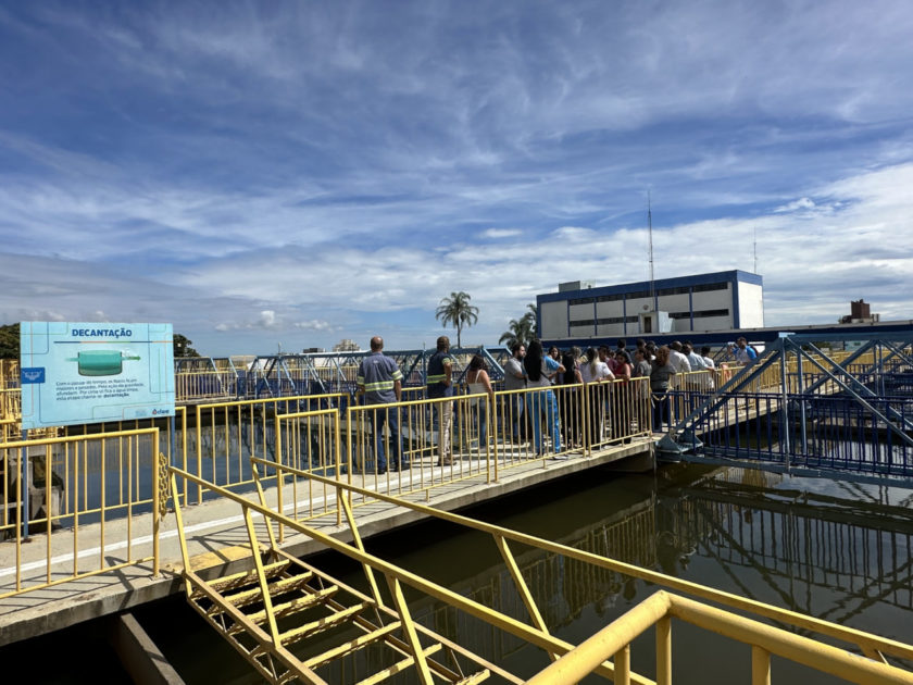 Durante o percurso, os participantes conheceram a Estação de Tratamento de Água do Anhangabaú (ETA-A) e a Estação de Tratamento de Esgoto (ETE), etapas essenciais do processo que garantem o saneamento de qualidade.