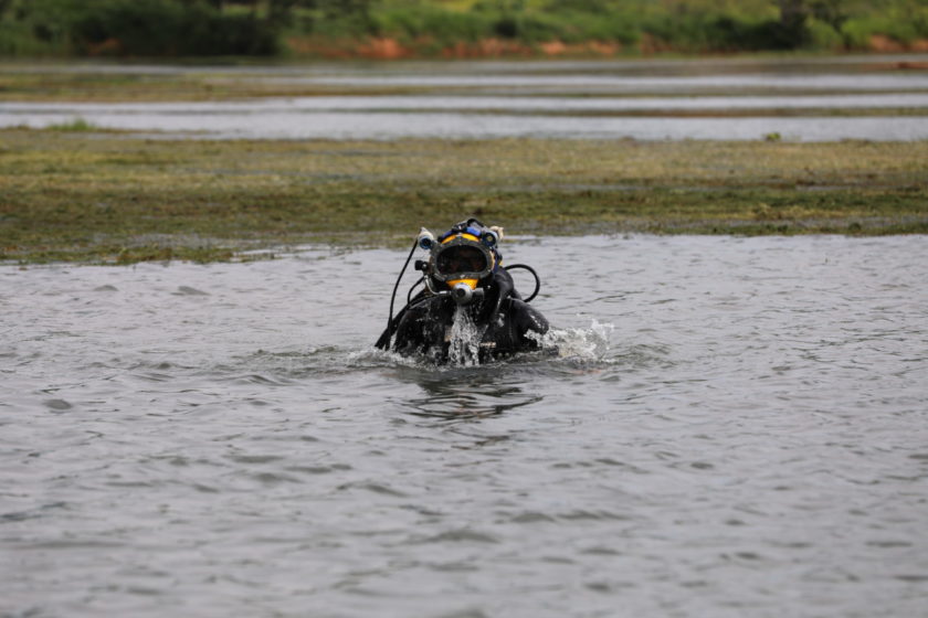 Outra frente de trabalho é conduzida por mergulhadores especializados, que realizam a retirada manual das plantas excessivas pelas raízes. O serviço é realizado de forma contínua ao longo de todo o ano e, para isso, os profissionais vestem um equipamento de 23 quilos, composto por um cilindro de backup, nadadeiras, máscaras de mergulho, luvas e traje de mergulho.