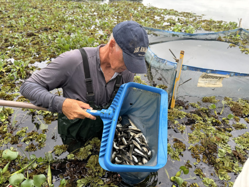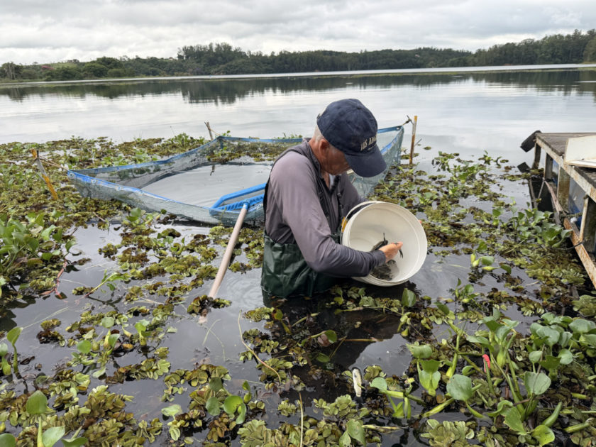 O processo começa com os peixes na fase de alevinos. Eles são mantidos em tanques-rede próximos à barragem, onde passam por um período de recria. “Na ação mais recente, cerca de seis mil peixes foram preparados. Eles são alimentados até atingirem o tamanho ideal – entre 13 e 15 centímetros – garantindo que sobrevivam e cumpram seu papel de ‘capinadores’ naturais, se alimentando das folhas dessas plantas”, detalha o engenheiro.